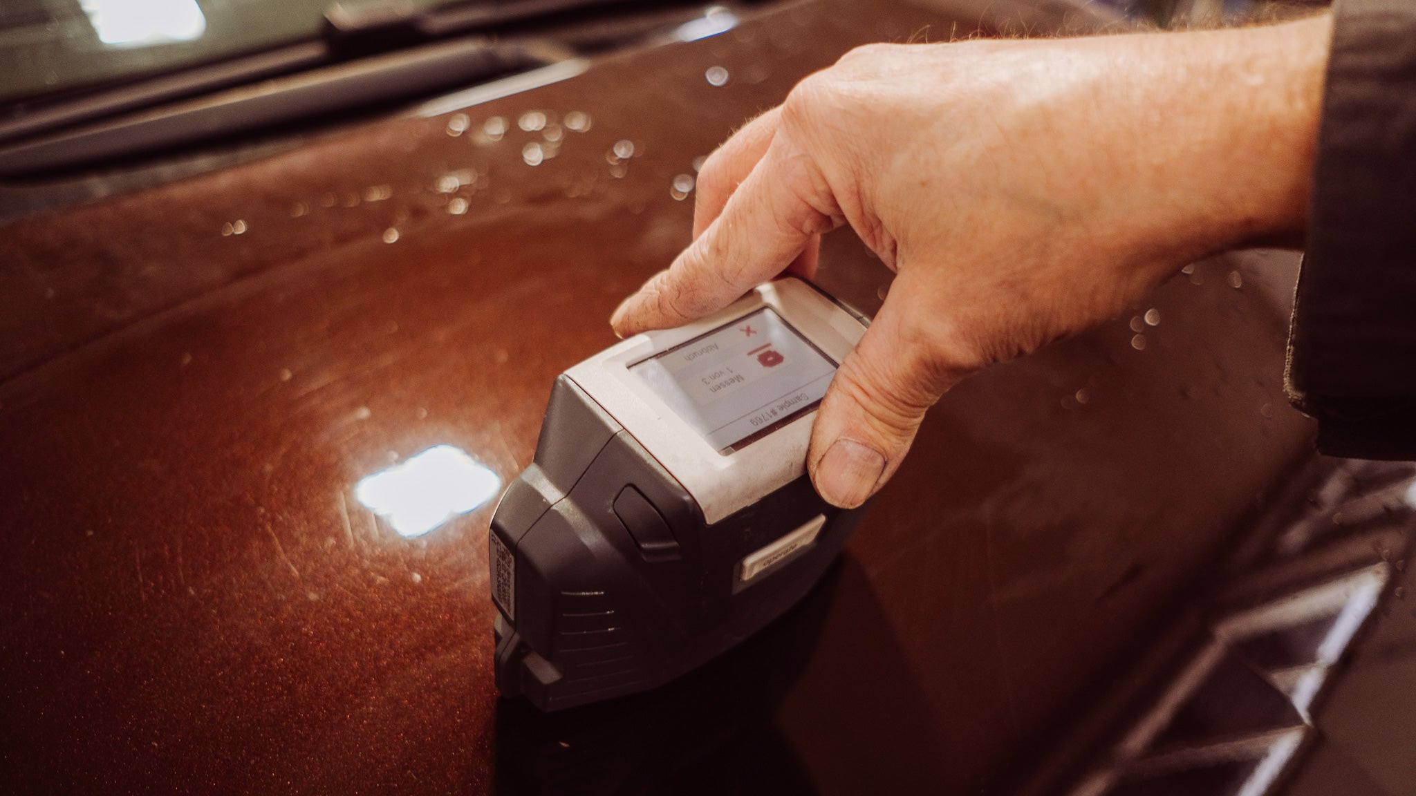 Die Farbtonermittlung kann entweder manuell oder automatisch durchgeführt werden. Wir verwenden ein elektronisches Farbmessgerät zur automatischen Farbtonermittlung, die Farbe des Fahrzeugs scannt und uns einen Farbcode zur Verfügung stellt, nach dem wir dann die Farbe für die Neulackierung vor Ort in unserer Werkstatt mischen.